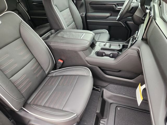 120-Volt Bed Mounted Power Outlet, 120-Volt Instrument Panel Power Outlet, 2 Charge-Only Rear USB Ports, 2 Charge/Data USB Ports Inside Center Console, 2 USB Ports, 2-Speed Active Transfer Case, Bed View Camera with Two Trailer Camera Provisions, Bose Premium Series 12-Speaker System, Deep-Tinted Glass, Electric Rear-Window Defogger, Floor-Mounted Center Console, Front Premium Floor Liners with Removable Carpet Insert, Front Rain-Sensing Wipers, Gloss Black Header Grille and Grille Insert Bars, HD Surround Vision, Heated 2nd Row Outboard Seats, Heated Driver and Front Outboard Passenger Seats, Hill Descent Control, Inside Rearview Auo-Dimming Rear Camera Mirror, Keyless Open and Start, LED Cargo Area Lighting, LED Smoked Amber Roof Marker Lamps, Manual Tilt-Wheel/Telescoping Steering Column, Multicolor 15 Diagonal Head-Up Display, OnStar Services Capable, Power Front Passenger Windows with Express Up/Down, Power Sliding Rear Window with Defogger, Power Sunroof, Preferred Equipment Group 4SG, Push Button Start, Rear Cross Traffic Alert, Rear Premium Floor Liners with Removable Carpet Insert, Rear Wheelhouse Liners, Remote Vehicle Starter System, Safety Alert Seat, SiriusXM with 360L Trial Subscription, Spray-on Pickup Bedliner with GMC Logo, Steering Wheel Audio Controls, Trailer Cam Provisions and Trailer Viewing Software, Trailer Side Blind Zone Alert, Trailer Tire Pressure Monitor Sensors, Ultrasonic Front and Rear Park Assist, Unauthorized Entry Theft-Deterrent System, Universal Home Remote, Ventilated Driver and Front Passenger Seats, Wireless Charging, Wireless Phone Projection, 12 Speakers, 16-Way Power Driver Seat Adjuster with Lumbar, 16-Way Power Passenger Seat Adjuster with Lumbar, 3 Years SiriusXM, 4-Wheel Disc Brakes, 5th Wheel and Gooseneck Trailer Wiring Provisions, ABS brakes, Air Conditioning, Alloy wheels, AM/FM radio: SiriusXM with 360L, Apple CarPlay/Android Auto, Auto High-beam Headlights, Auto-dimming door mirrors, Auto-dimming Rear-View mirror, Automatic Emergency Braking, Automatic temperature control, Brake assist, Buckle to Drive, Compass, Delay-off headlights, Driver door bin, Driver Memory, Driver vanity mirror, Dual front impact airbags, Dual front side impact airbags, Electronic Stability Control, Emergency communication system: OnStar, Following Distance Indicator, Forward Collision Alert, Front anti-roll bar, Front Bucket Seats, Front Center Armrest, Front dual zone A/C, Front fog lights, Front Pedestrian Braking, Front reading lights, Front wheel independent suspension, Full Grain Leather Seat Trim, Fully automatic headlights, Garage door transmitter, Gloss Black Door Handles, GMC MultiPro Tailgate Step Lights, Heads-Up Display, Heated door mirrors, Heated front seats, Heated rear seats, Heated steering wheel, Heavy-Duty 80 Amp Battery, Hitch Guidance with Hitch View, Illuminated entry, in-Vehicle Trailering System App, IntelliBeam Automatic High Beam on/Off, Lane Departure Warning System, Leather steering wheel, Low tire pressure warning, Memory seat, Occupant sensing airbag, Off-Road Suspension, Outside temperature display, Overhead airbag, Overhead console, Panic alarm, Passenger door bin, Passenger vanity mirror, Pickup Box, Power door mirrors, Power driver seat, Power moonroof, Power passenger seat, Power steering, Power windows, Premium audio system: Premium GMC Infotainment System, Radio: AM/FM Stereo with Premium GMC Infotainment System, Rain sensing wipers, Rear reading lights, Rear seat center armrest, Rear step bumper, Rear window defroster, Remote keyless entry, Security system, Speed control, Speed-sensing steering, Split folding rear seat, Steering wheel mounted audio controls, Tachometer, Telescoping steering wheel, Tilt steering wheel, Traction control, Trip computer, Turn signal indicator mirrors, Variably intermittent wipers, Ventilated front seats, Voltmeter, Wheels: 18 Machined Aluminum with High Gloss Black Accents, 120-Volt